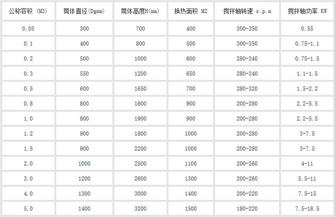 注:冷卻加熱形式有夾套式、內(nèi)盤管式,外環(huán)管式,供用戶選用。